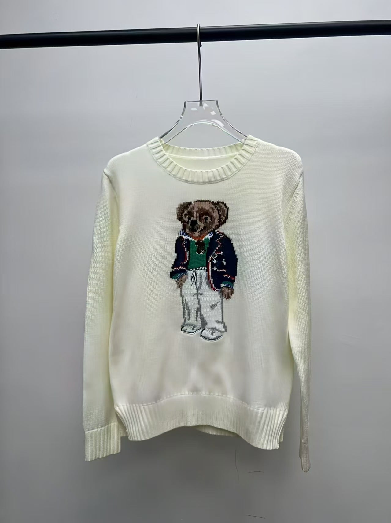 2025 autumn and winter new wool blend cartoon teddy bear round neck college age reducing versatile sweater women's long embroidery